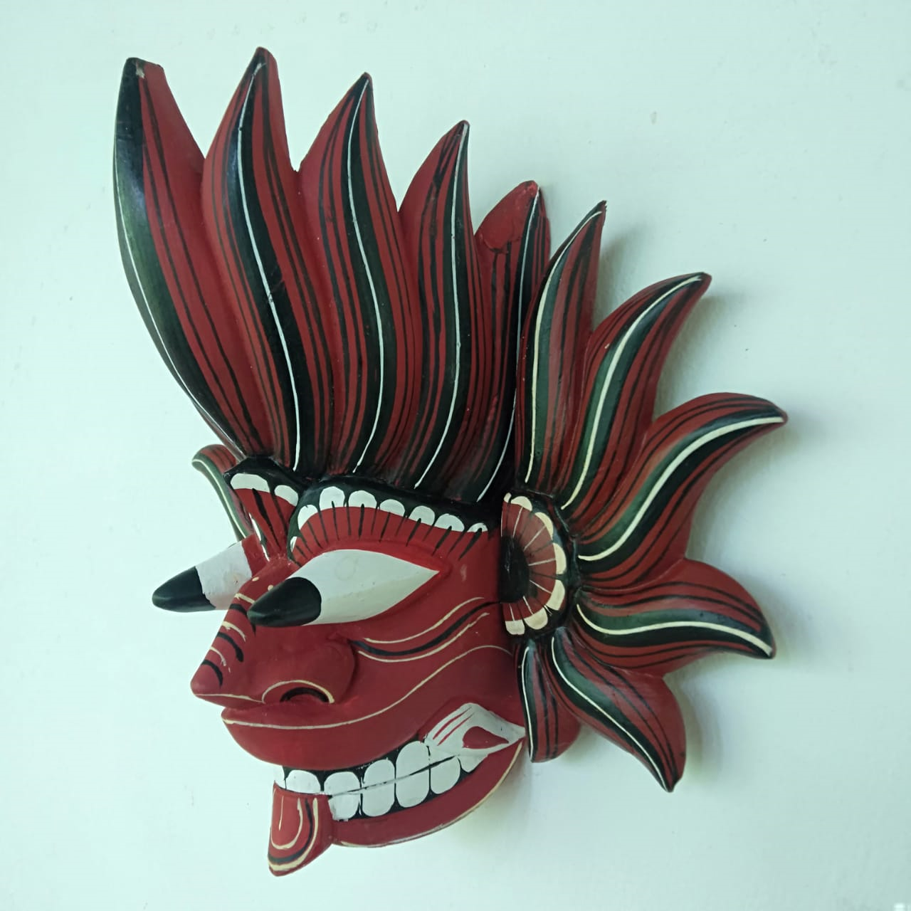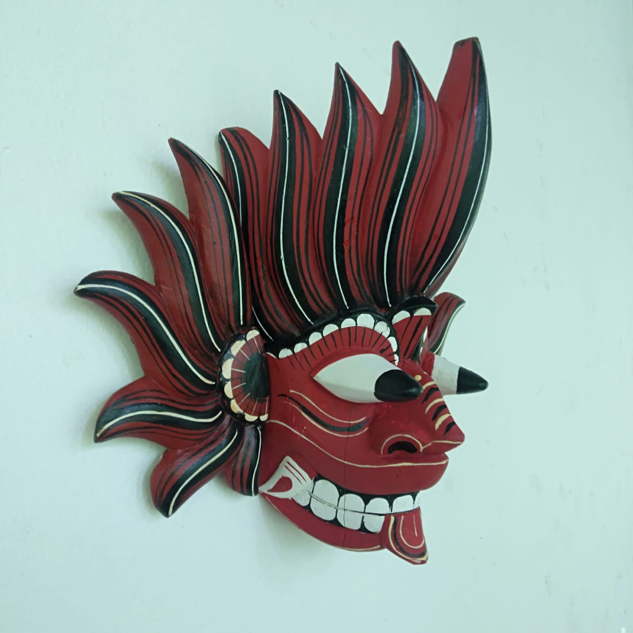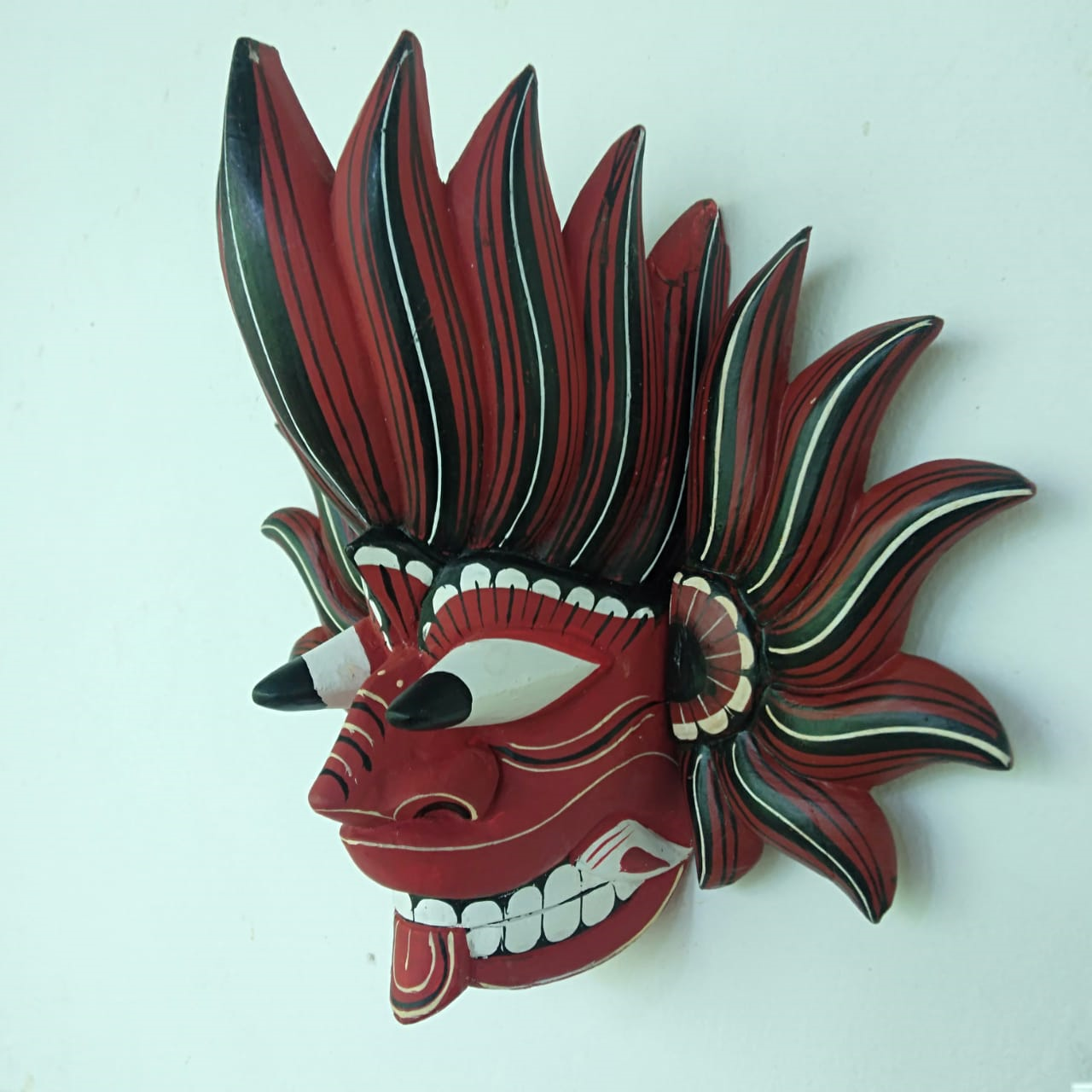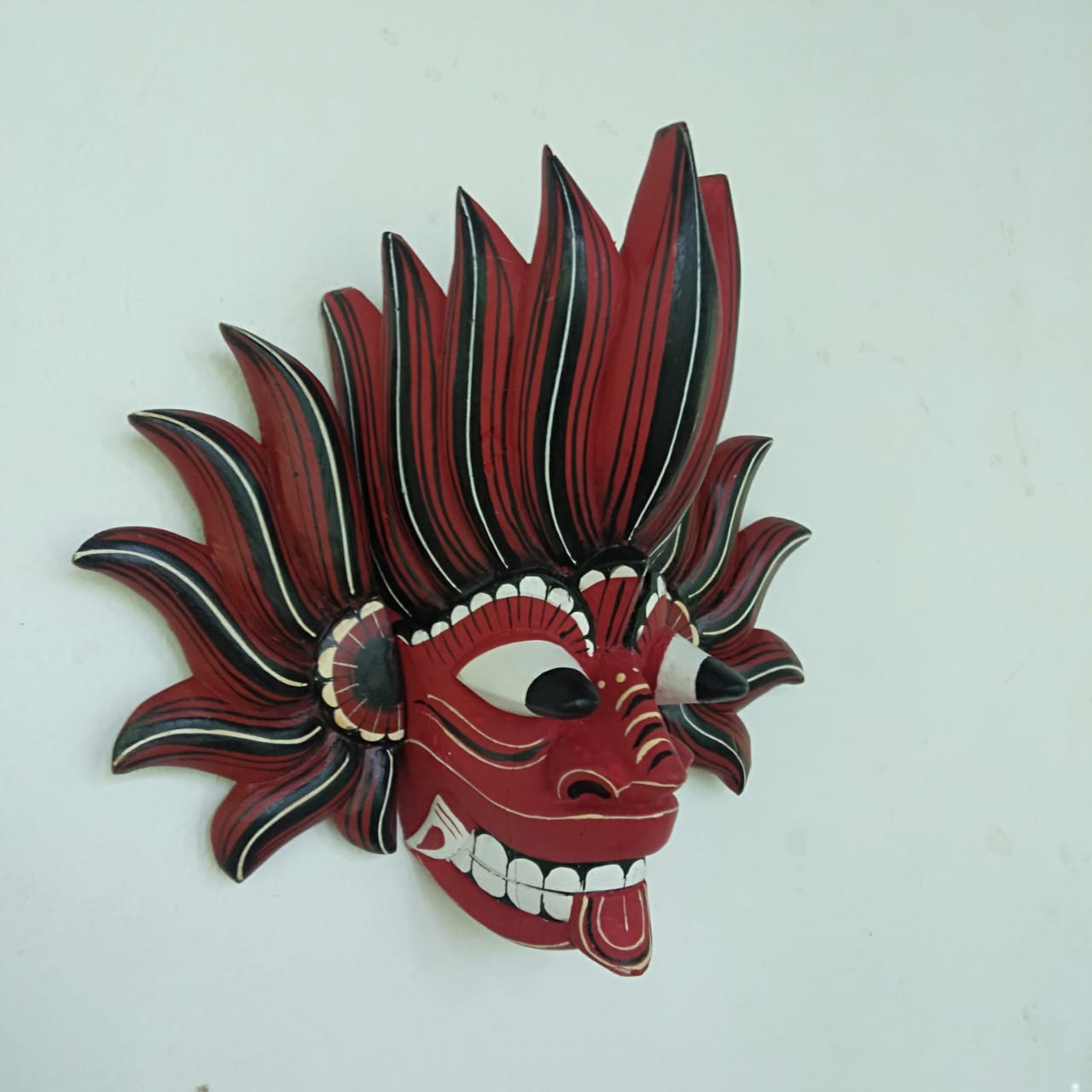 Fire Demon (Gini Raksha) mask is one of the many of Sri Lankan traditional wooden masks. The Traditional Wooden Raksha (Demon) Masks are one of the main productions in the Craft Industry of Sri Lanka and a huge interest among the locals as well as the tourists. The Raksha(Demon) Wooden Masks has been used in Traditional Sri Lankan festivals and Cultural dances for decades. These Masks are handmade by our talented craftsmen using Kaduru wood which is a source of the world’s lightest timber. These Masks are believed to Ward off Evil and bring Harmony & Prosperity.